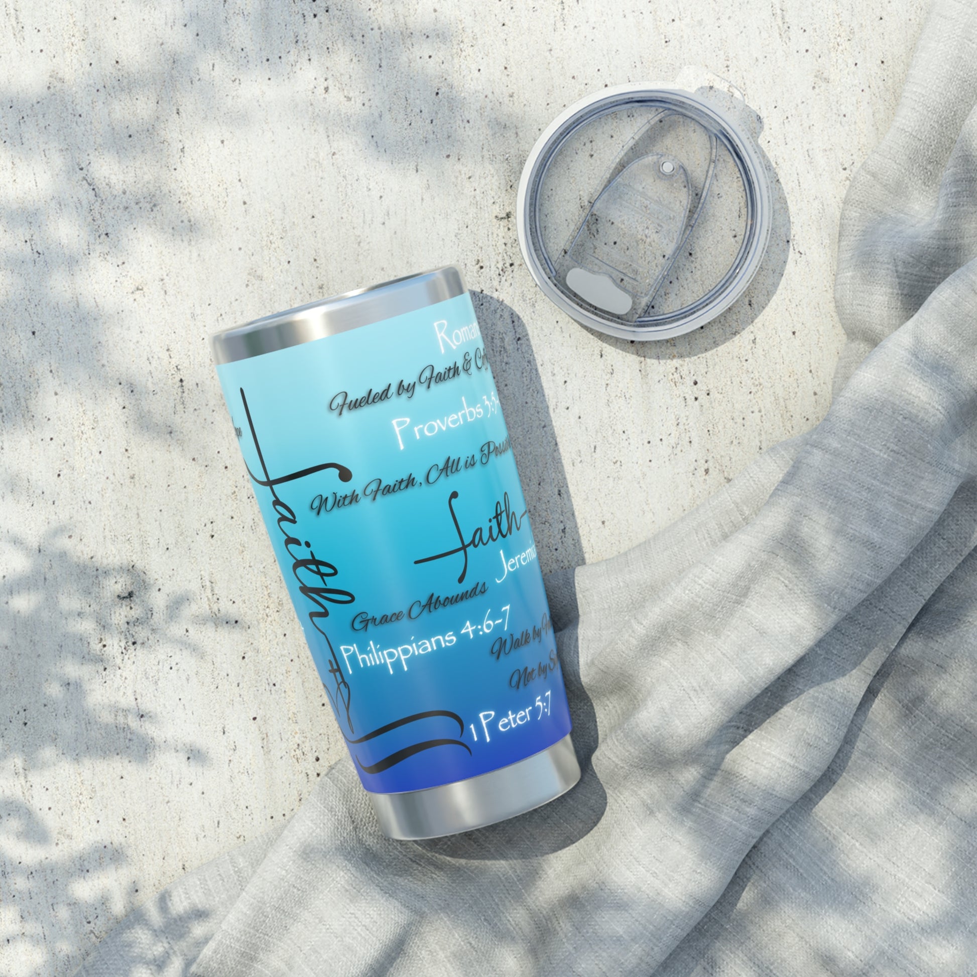 This 20oz tumbler isn’t just functional—it’s faith in motion. Covered in scripture-inspired phrases and anchored in spiritual truth, it’s designed for those who want their drinkware to speak with purpose. The bold design remains the same across a variety of color options, allowing you to choose the one that reflects your style while holding onto what matters most.