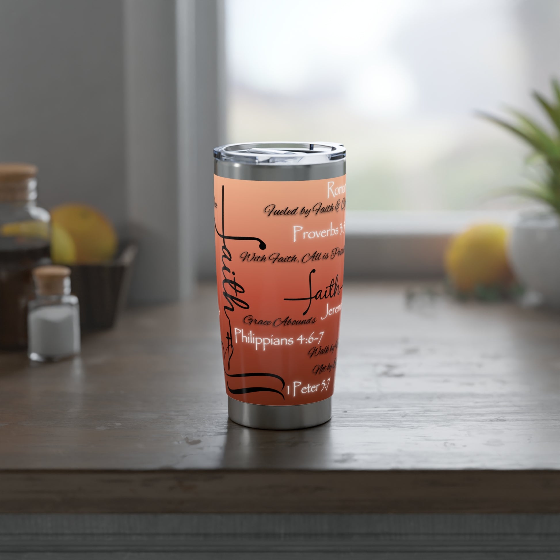 Whether you're heading to work, running errands, or setting time aside for quiet reflection, this tumbler keeps your drink steady and your spirit grounded.
