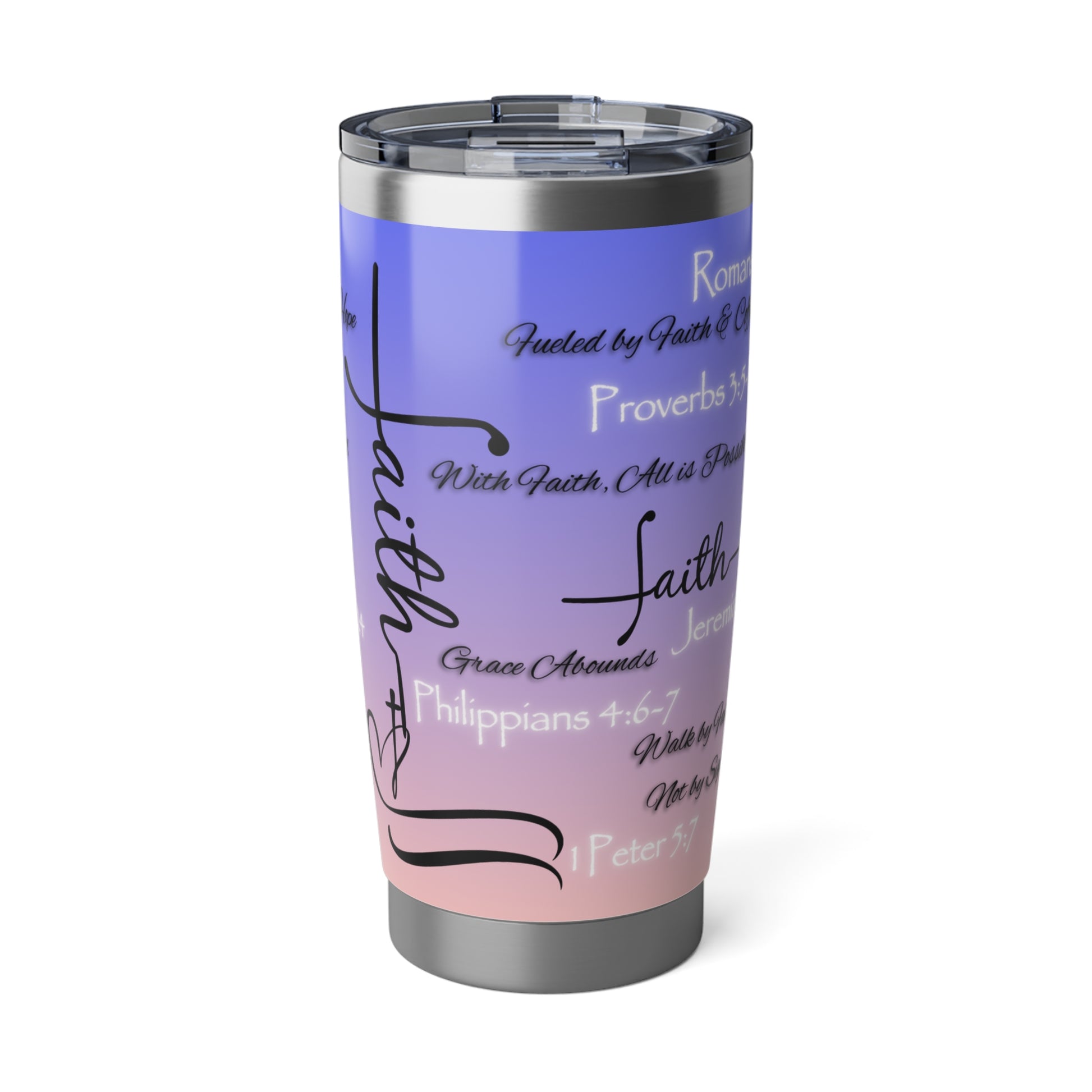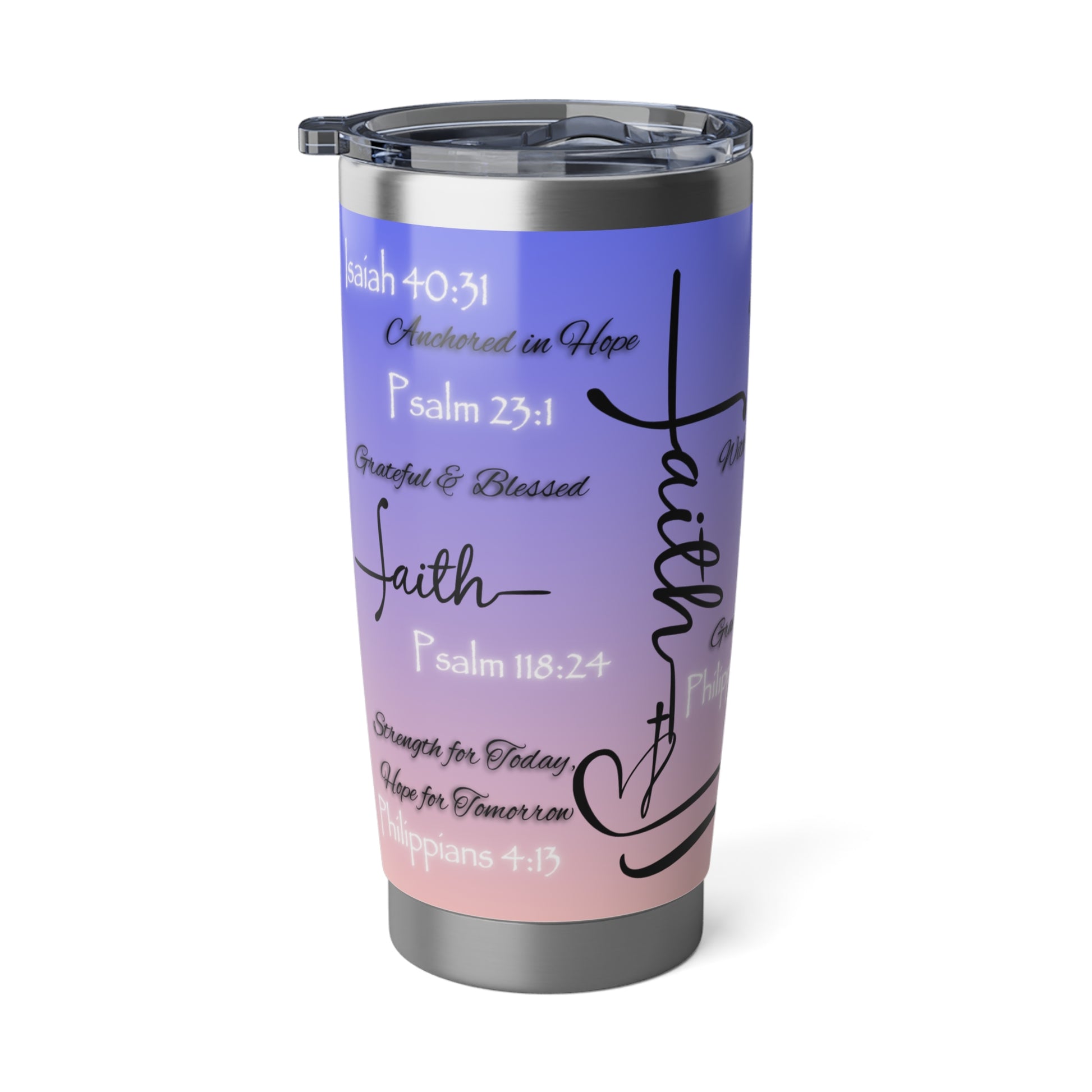 This 20oz tumbler isn’t just functional—it’s faith in motion. Covered in scripture-inspired phrases and anchored in spiritual truth, it’s designed for those who want their drinkware to speak with purpose. The bold design remains the same across a variety of color options, allowing you to choose the one that reflects your style while holding onto what matters most.