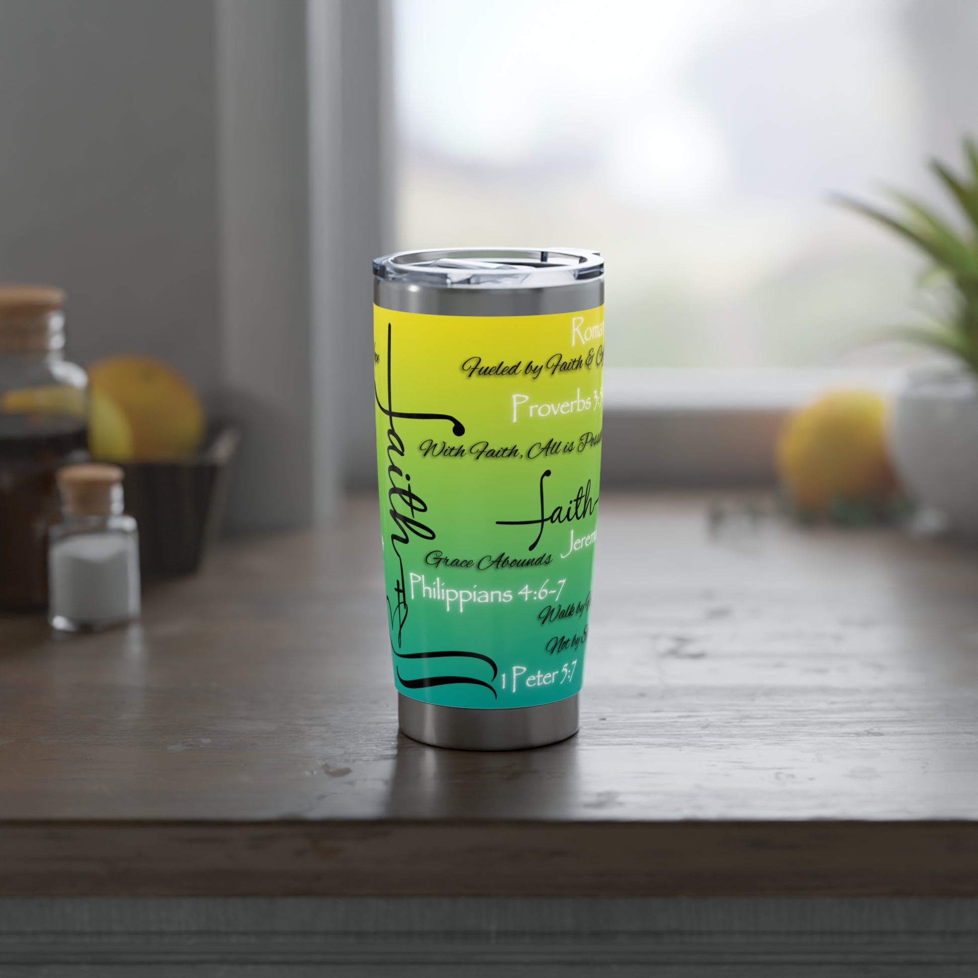 Whether you're heading to work, running errands, or setting time aside for quiet reflection, this tumbler keeps your drink steady and your spirit grounded.