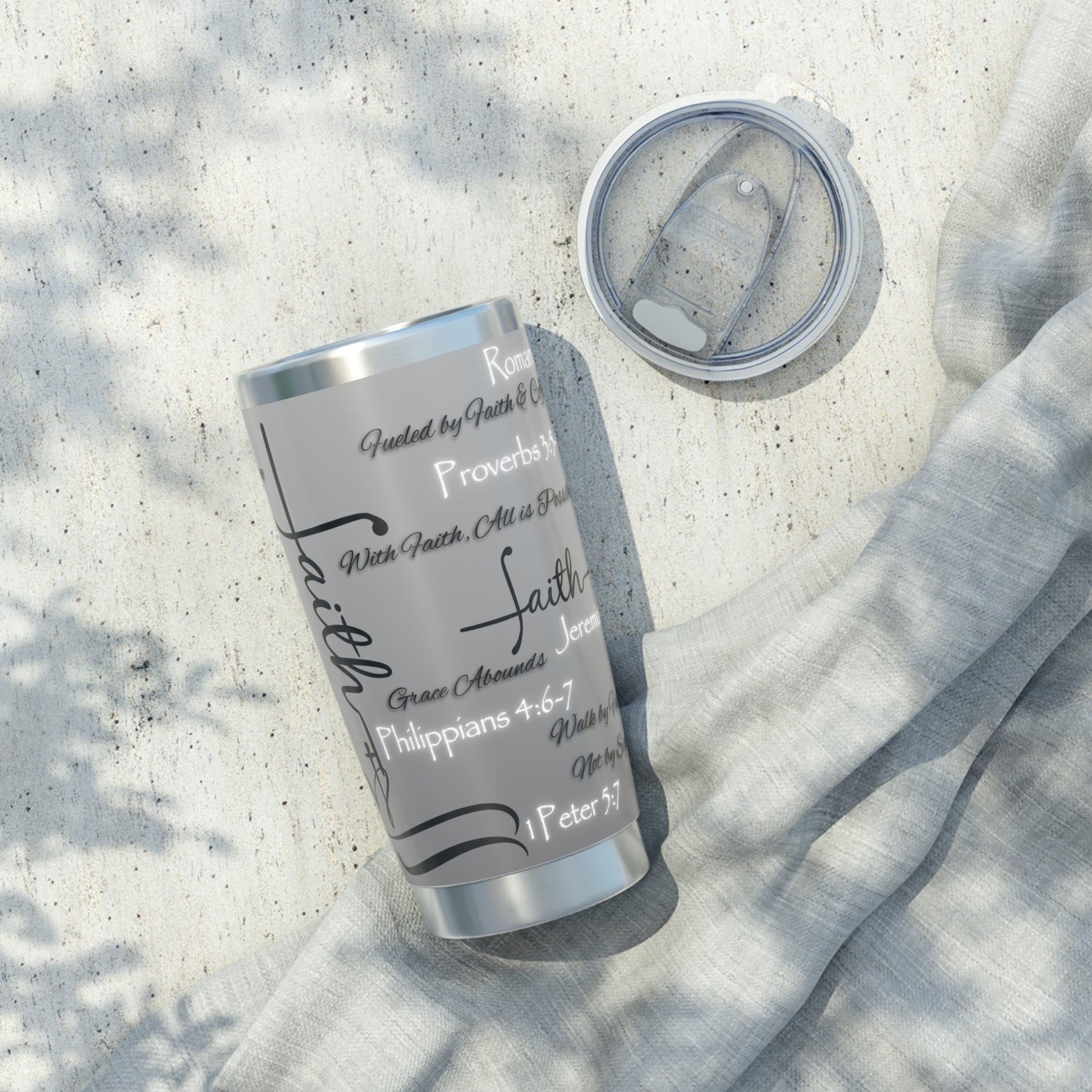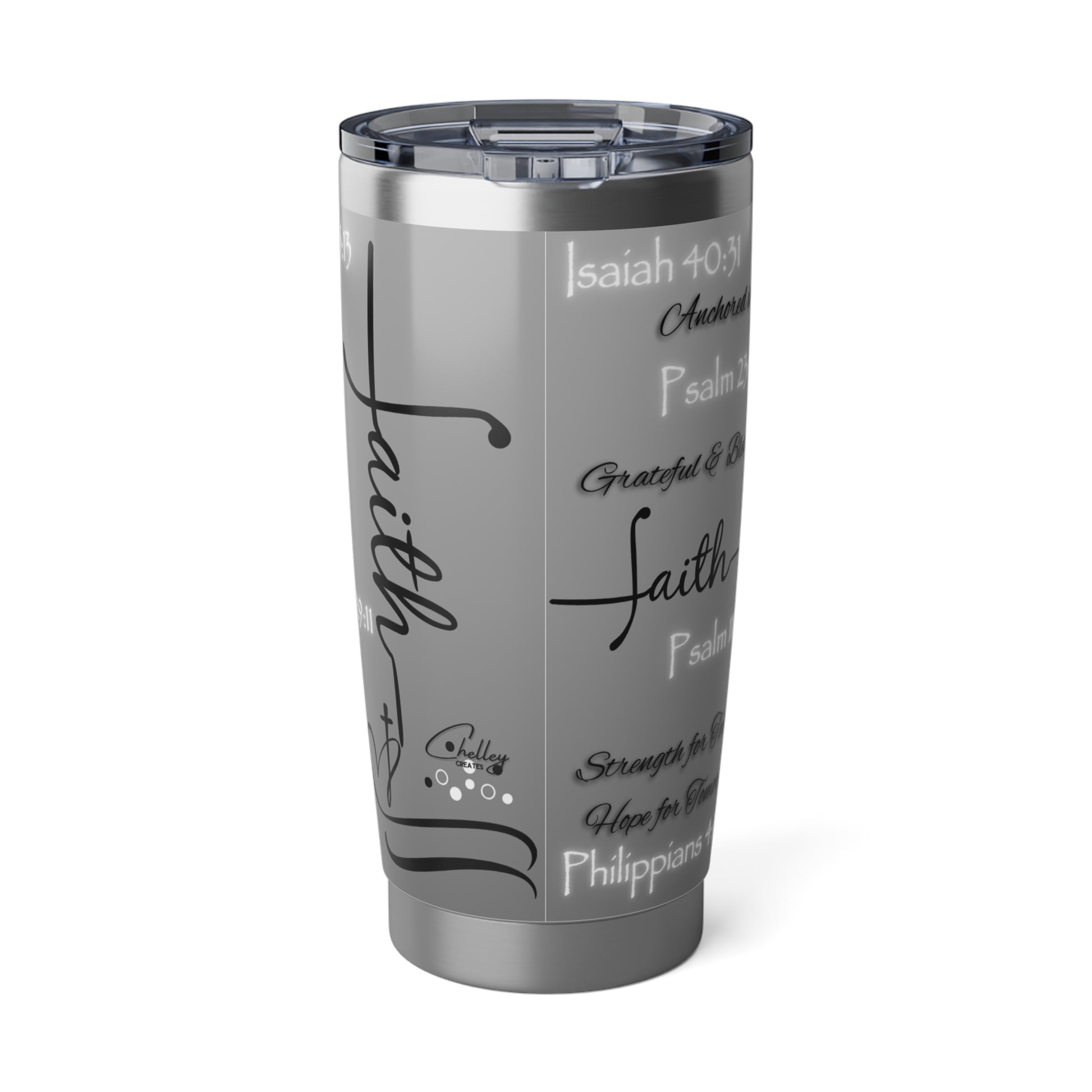 This 20oz tumbler isn’t just functional—it’s faith in motion. Covered in scripture-inspired phrases and anchored in spiritual truth, it’s designed for those who want their drinkware to speak with purpose. The bold design remains the same across a variety of color options, allowing you to choose the one that reflects your style while holding onto what matters most.