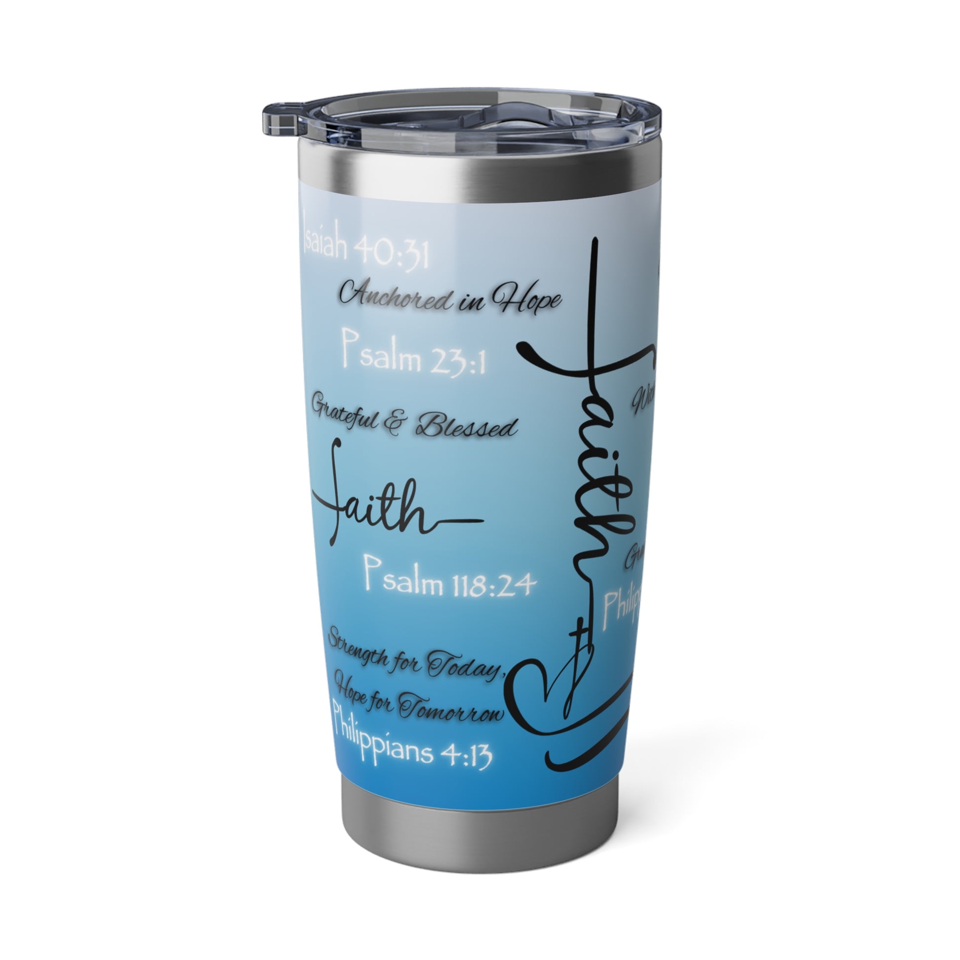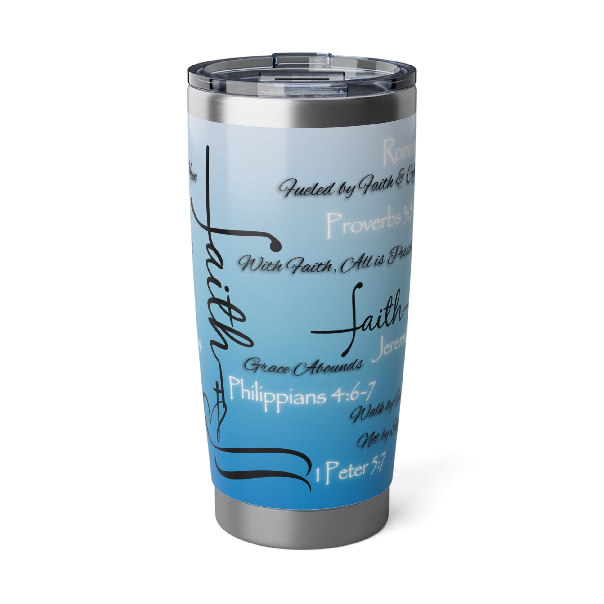 This 20oz tumbler isn’t just functional—it’s faith in motion. Covered in scripture-inspired phrases and anchored in spiritual truth, it’s designed for those who want their drinkware to speak with purpose. The bold design remains the same across a variety of color options, allowing you to choose the one that reflects your style while holding onto what matters most.